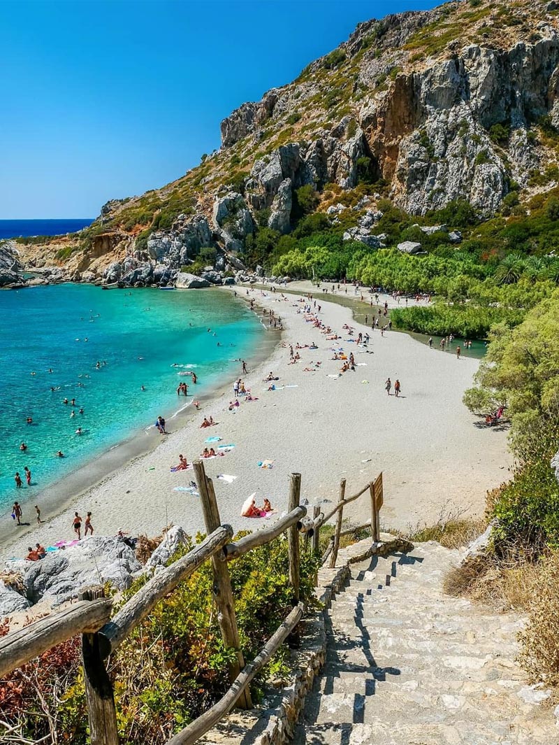The beach of Preveli is the most idyllic beach in Rethymno. Preveli reminds of an exotic lagoon. It is an oasis of palm trees with crystalline greenish waters and fine soft sand. Kourtaliotis River ends at this wonderful beach, creating a delta.
