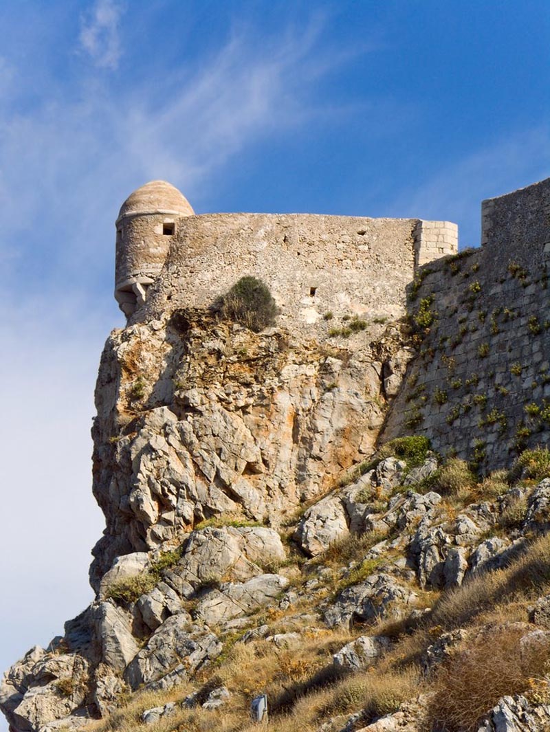 The Venetian stronghold of Fortezza is built on top of a low hill above Rethymno Town, Crete. This huge fortress, with its turbulent history, was built between 1540 and 1570 by the Venetian maritime power as a bulwark against Turkish pirates.