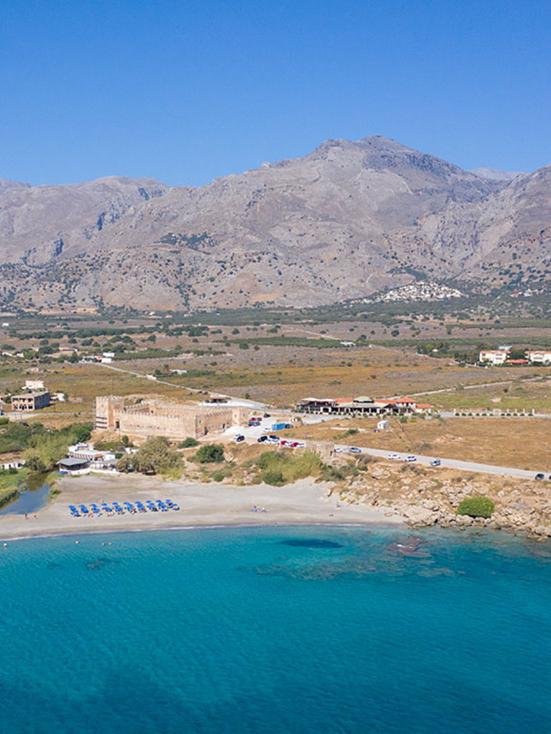 Frangokastello is one of the most famous beaches of Crete, famous for the local Venetian castle on the beautiful beach and the legendary ghosts of Drosoulites. The castle was built by the Venetians in 1371-74 as a garrison to impose order on the rebellious Sfakia region.